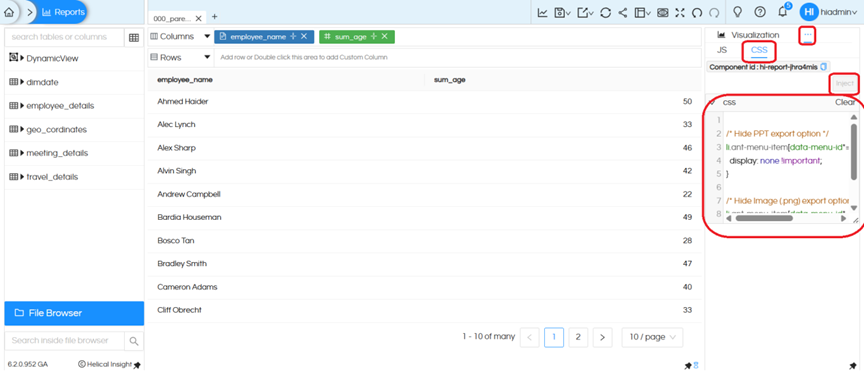 Additionally, we can hide CSV, XLSX, and PDF export options using similar CSS by targeting their menu identifiers.