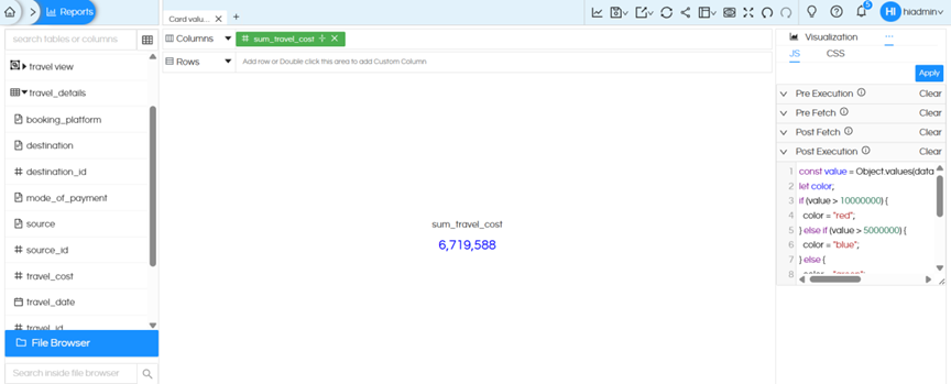 We are using the open-source BI tool Helical Insight version 6.0 and would like to apply conditional color formatting to values displayed in a Card widget.