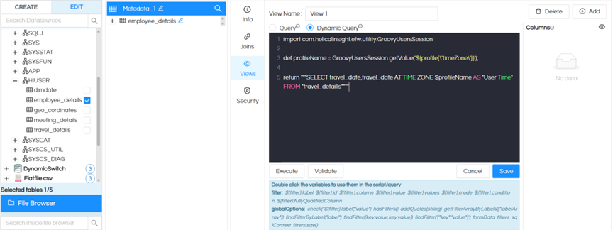 hello, We are using open source BI Helical Insight version 6.1.0.852 GA (Docker). We want to pass in the user’s time zone by fetching it dynamically from the user profile (profile[‘timeZone’]). Can we achieve this use case ?
